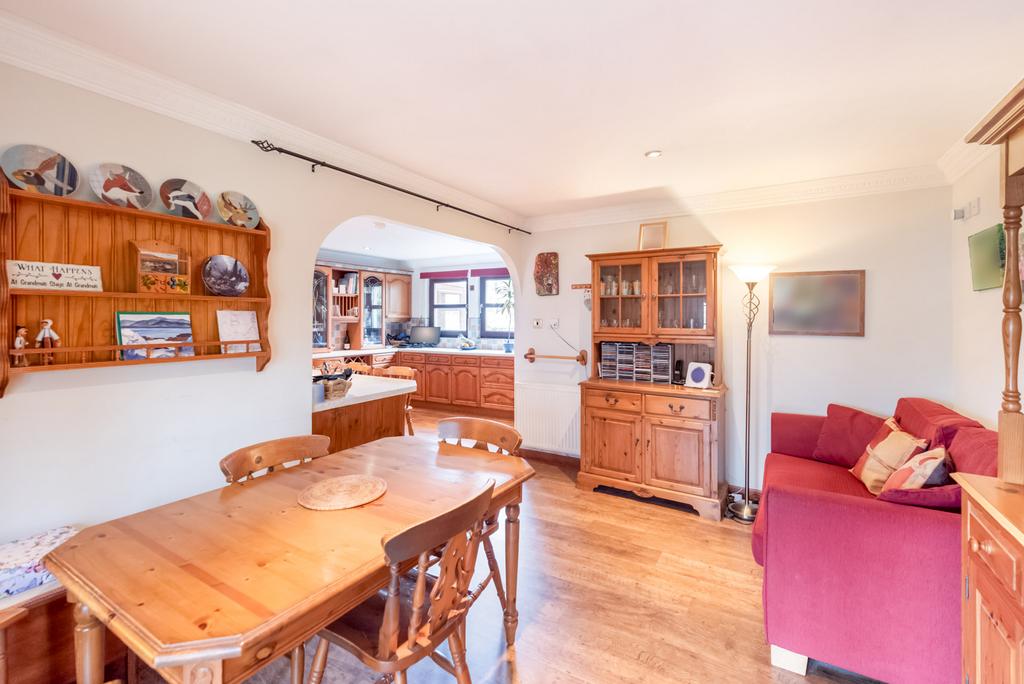 The property benefits from attractive private gardens. Ample parking on a mono-bloc driveway leading to a large double garage/workshop with W.C. & ladder access to an extensive floored loft, sheltered roof overhang and walkway linking the garage to the property, & there is a wood store at the rear. The fully-enclosed rear is laid to lawn with mature planting, and a most pleasant burn runs down the edge of garden over which three charming bridges span the banks, leading to a garden pond.