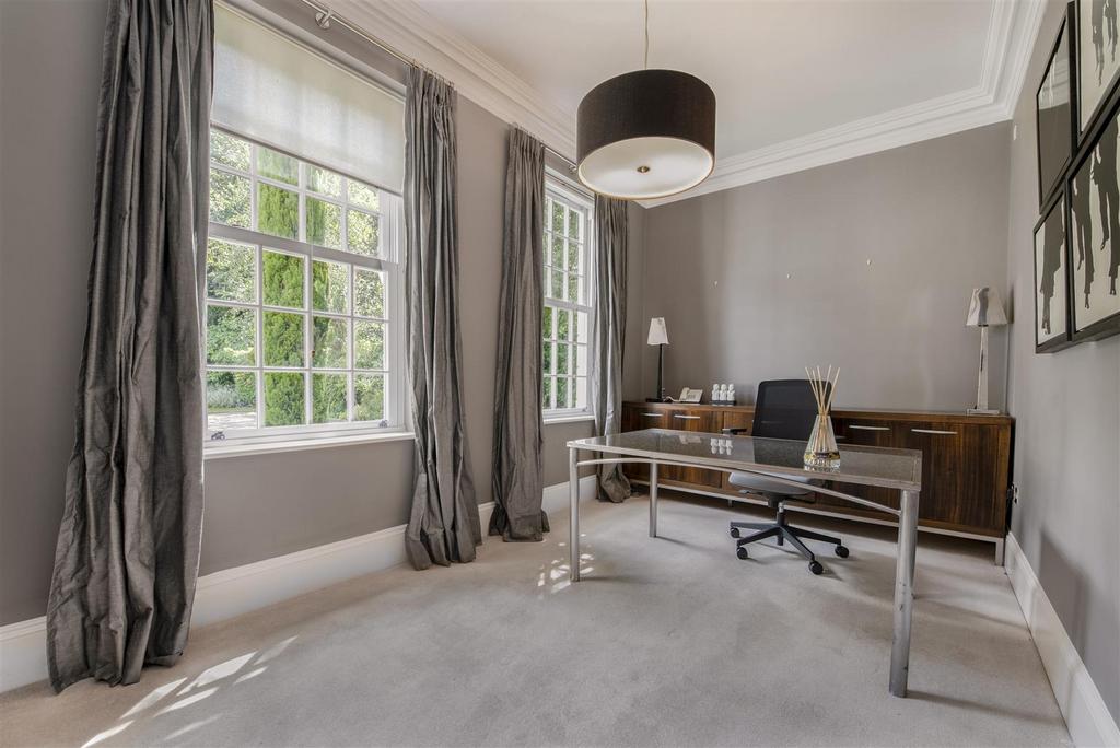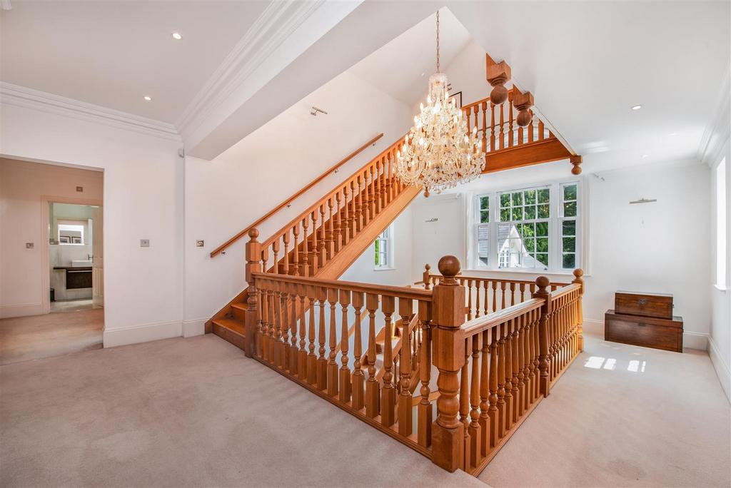 The first floor has a bright landing looking down over the ground floor. The main bedroom has a Juliet balcony overlooking the garden, a dressing room and an en suite with a bath and separate shower. There are four further double bedrooms, all with built in wardrobes, two en suites and a family bathroom. The top floor has a further three bedrooms and two shower rooms.