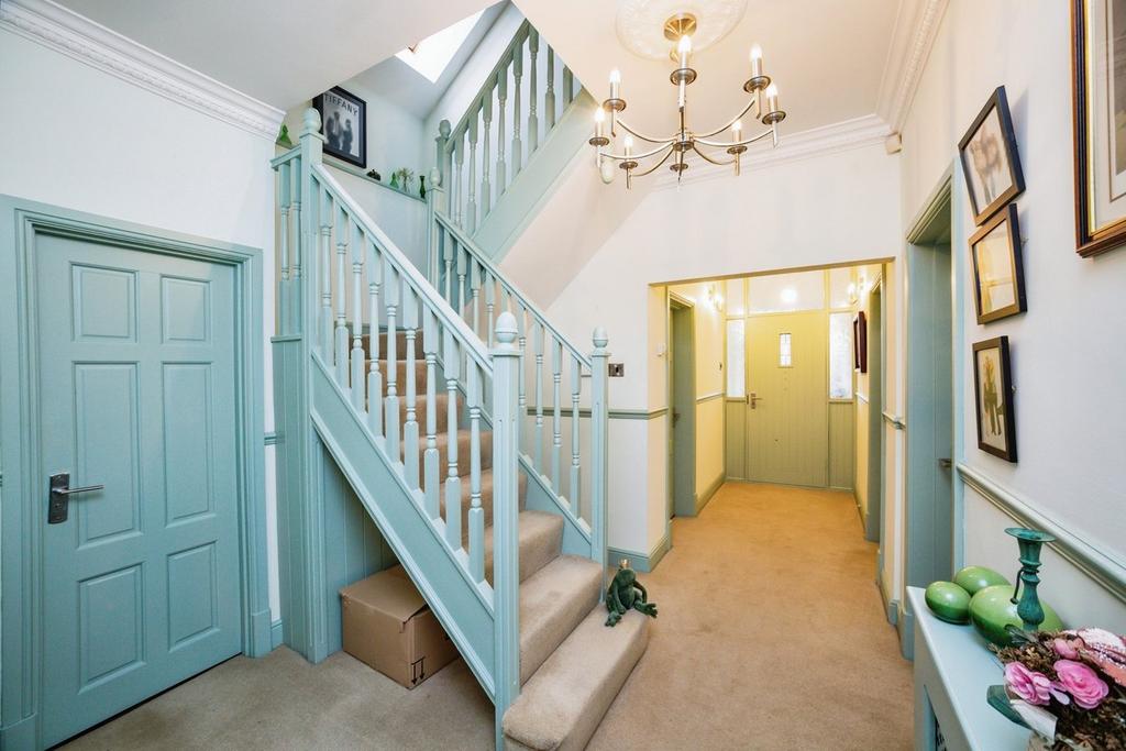 Externally, to the front of the property there is a large front garden with a driveway leading to a garage providing off road parking for multiple cars. To the rear there is a generous sized enclosed garden with paved patio seating areas, and a laid to lawn area with mature shrubs and established plants. There is also a shed and a feature green house, and an additional driveway providing further off road parking.