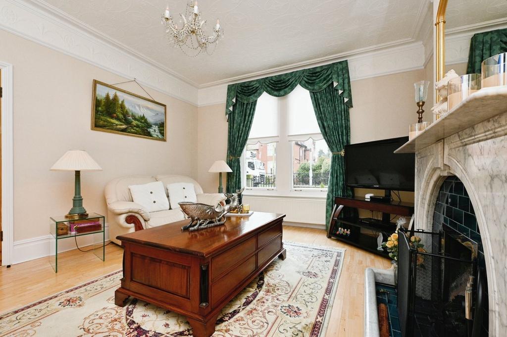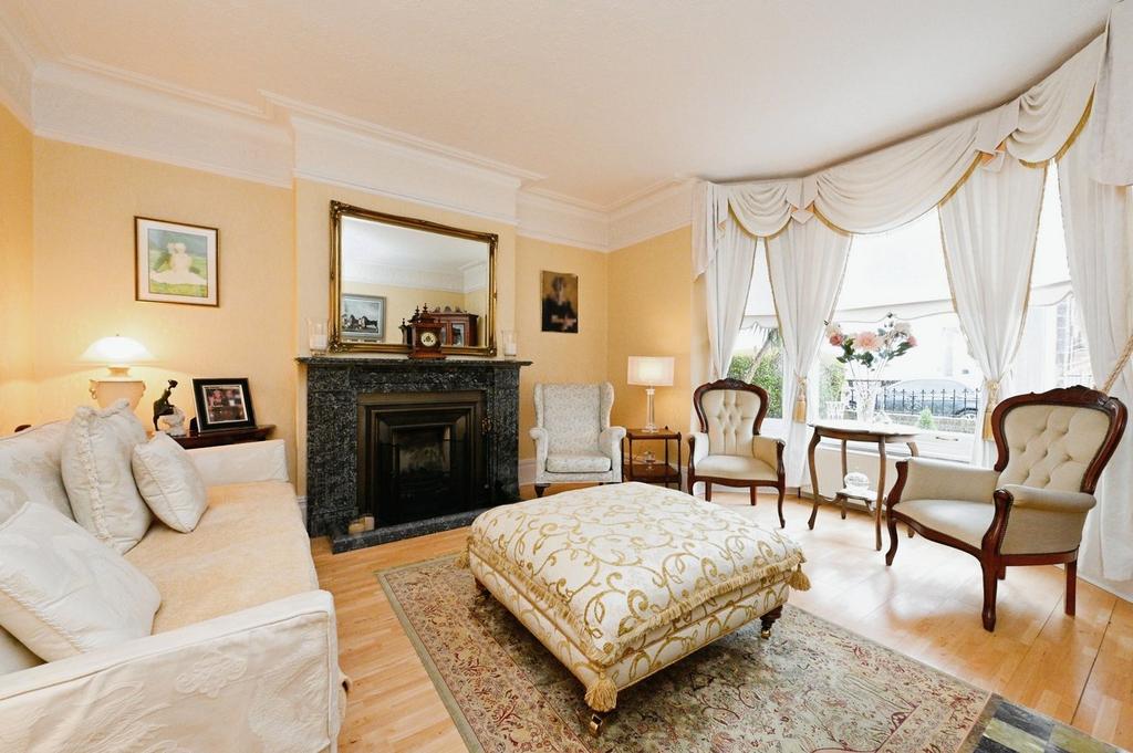 Drawing Room - A bright and spacious room offering generous space for furniture for a range of uses, with a large front aspect bay window providing ample natural light, wooden flooring, a feature fireplace with a decorative surround and a door leading to the dining room.