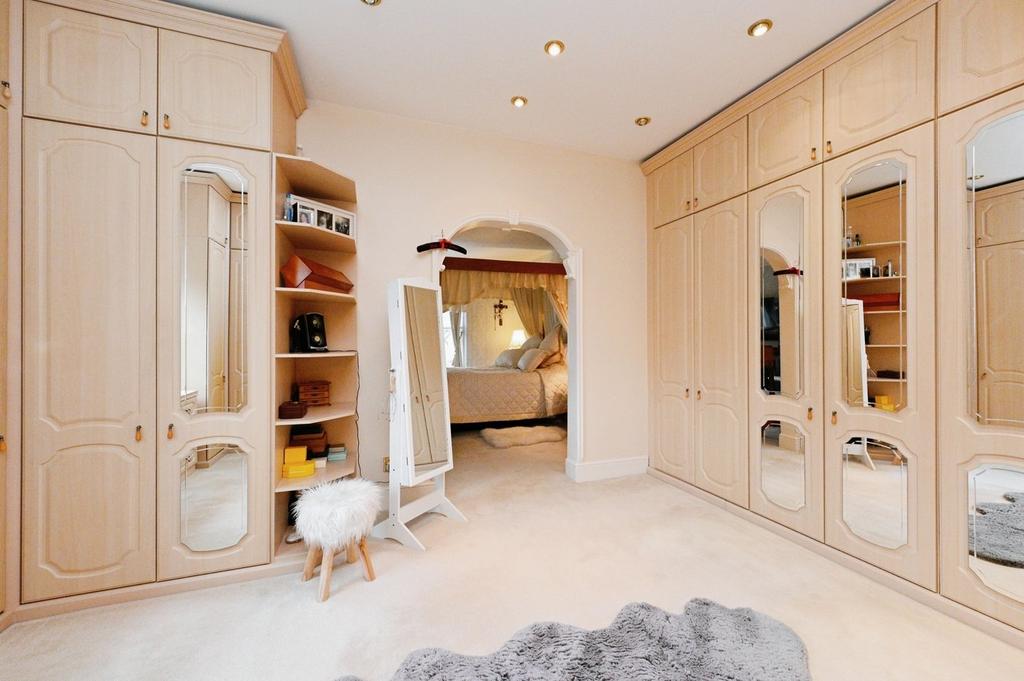 Walk-In Wardrobe - A generous sized dressing room with a range of fitted wardrobes providing ample storage, with a side aspect sash window, carpeted flooring and a door leading to an en-suite.