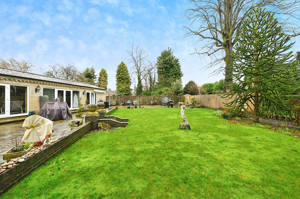 Externally, the property sits on a generous sized plot of land comprising of a large front garden with decorative laid to lawn areas and a driveway leading to a garage providing off road parking for multiple cars. To the rear there is a generous sized enclosed garden with multiple paved patio seating areas, and large laid to lawn areas with mature shrubs, established plants, flower beds and trees.