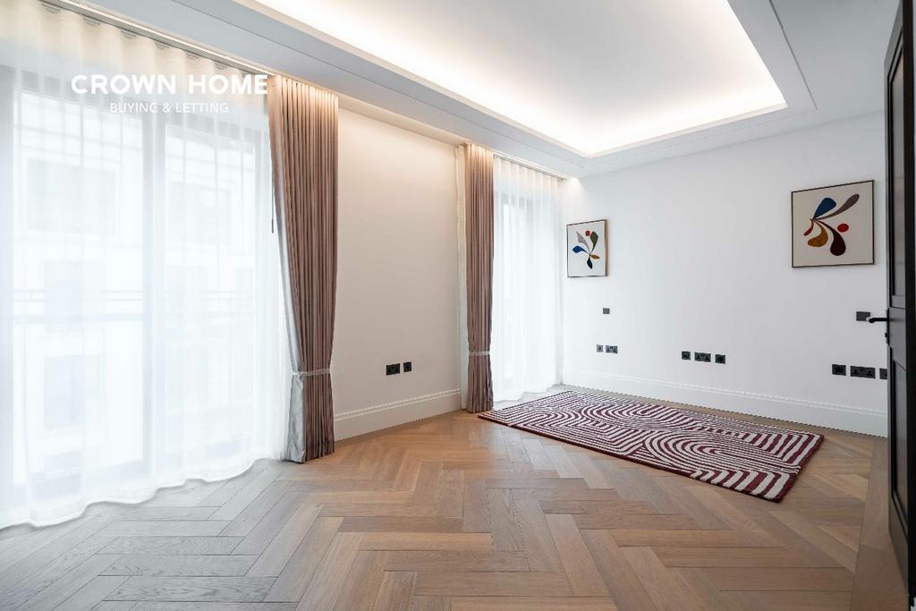 Superior sound insulation is incorporated into the internal walls. The contemporary timber veneered doors, with solid lipping, brass inlays, and bespoke Joseph Giles ironmongery, add a touch of elegance and ensure durability.