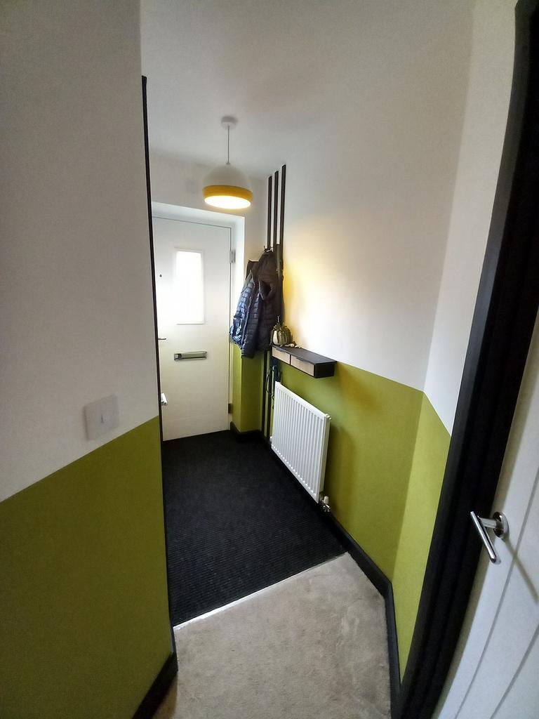 RECEPTION HALL having a single radiator, a wall shelf, coat hooks, a central heating thermostat controlling the ground floor accommodation, a smoke detector alarm and the following rooms off: