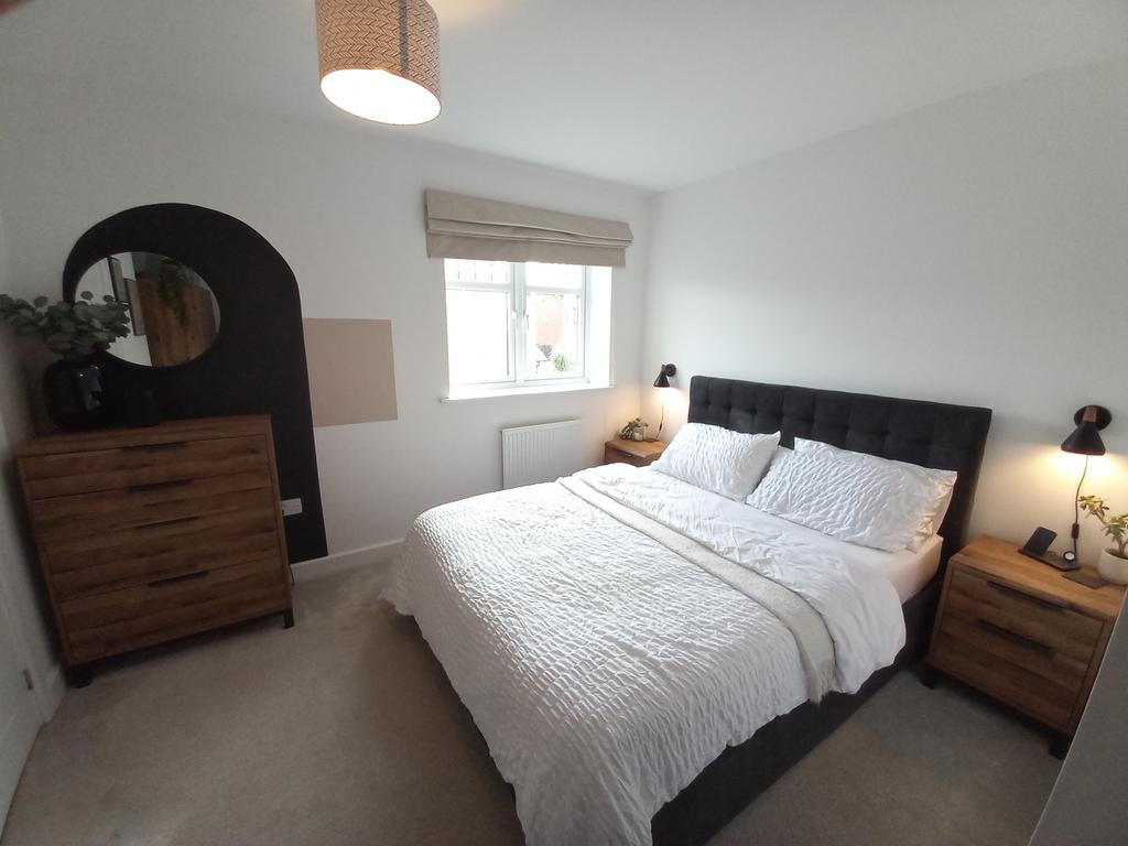 REAR BEDROOM TWO 9’ 0” (2.76m) x 8’ 5” (2.56m) having a single radiator, a uPVC double glazed window and a wood effect panelled door.