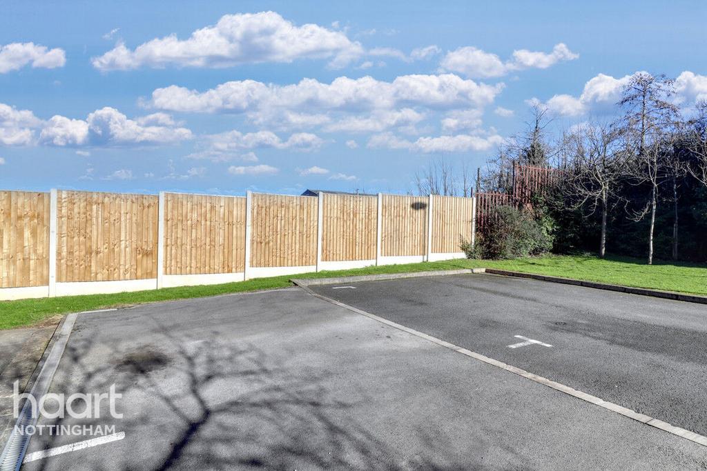A paved parking bay directly outside the property with a shrubbery front garden.