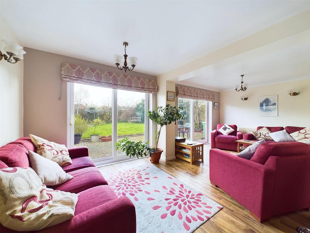 Living/ Family Room - 6.15m x 4.65m (20'2 x 15'3) - Two sets of sliding doors to rear, Upvc double glazed window to side, two radiators, power points, telephone point. tv aerial point, lino flooring, door to: