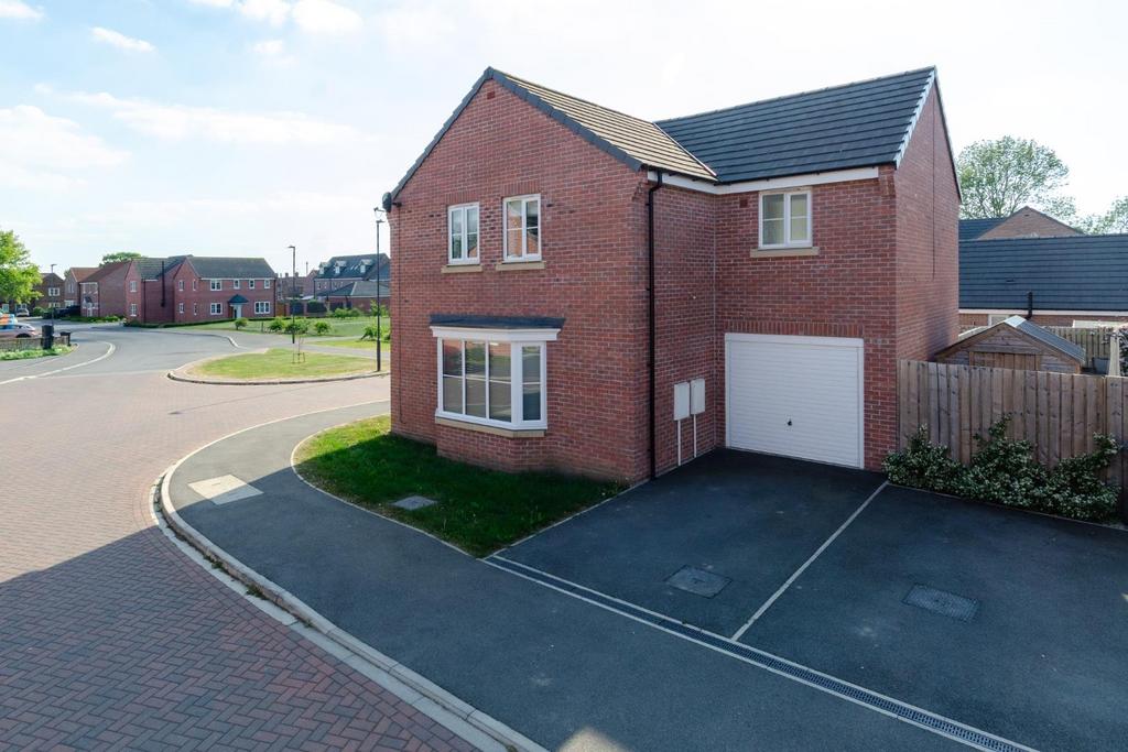 Outside - The open plan front and side gardens are mainly laid to lawn and a tarmac driveway provides parking and access into an 17'7" (5.37m) long integral single garage with power and light connected plus a door out into the rear garden.