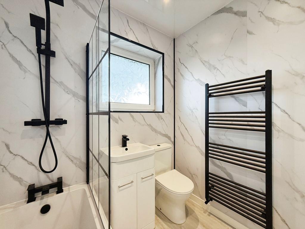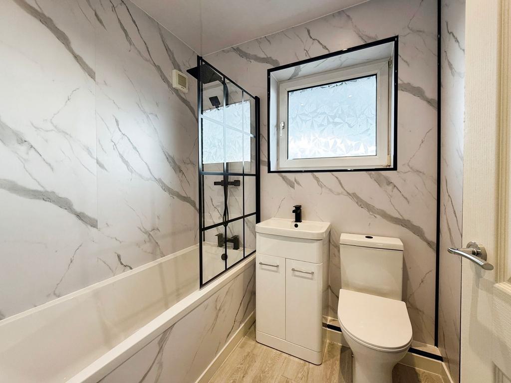 Ascend the staircase to the first floor, where you will discover a generous landing area, two spacious bedrooms, and a fabulous new bathroom.