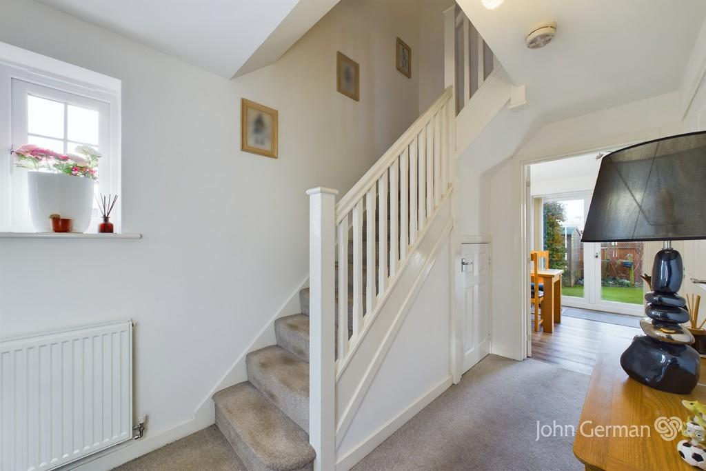 A separate utility room is an added bonus, providing additional storage cabinetry and spaces for a washing machine and tumble dryer. The gas-fired central heating boiler is also housed here, with a UPVC glazed door offering access to the garden.