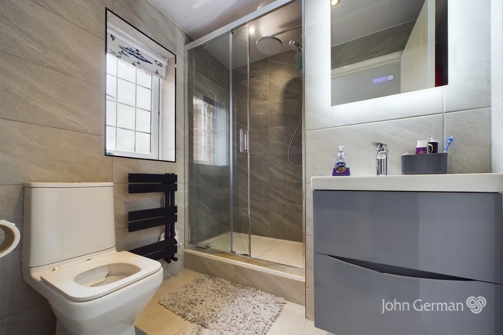 There are three further well proportioned bedrooms all served by a family shower room which has again been refitted with a low flush WC, vanity wash basin with storage beneath and LED mirror above, a large separate shower cubicle, full height ceramic tiling, window to the front with fitted shutters and a chrome heated towel rail.