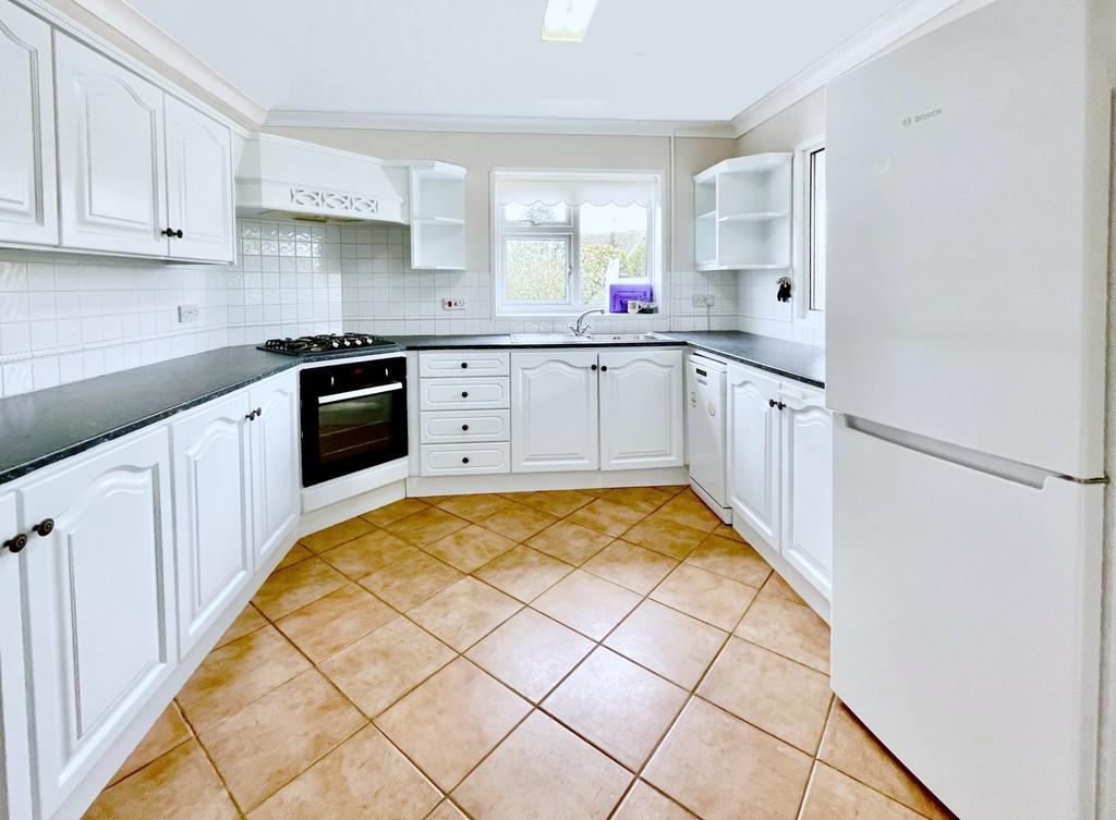 KITCHEN 10' 7" x 11' 9" (3.23m x 3.59m) UPVC double glazed window to the side and rear elevations, coved and textured ceiling, centre light point, double radiator, tiled flooring, fitted with a wide range of base, eye level and drawer units, work surfaces over, tiled splashbacks, integrated Rangemaster gas hob, integrated CDA electric oven, extractor hood over, inset stainless steel sink with mixer tap, plumbing and space for washing machine, space for fridge freezer, TV point. Door into: