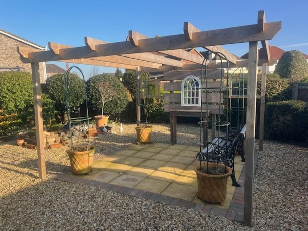 REAR GARDEN Designed for ease of maintenance with patio and gravelled areas, pergoda, wide range of mature shrubs and trees. Wooden garden shed.