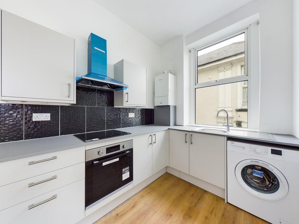 The open-plan kitchen and dining area has been thoughtfully designed to maximise space and functionality. Fitted with sleek, modern cabinetry and integrated white goods, it offers a stylish setting for cooking and entertaining. A brand-new bathroom adds to the property's appeal, complete with a generously sized shower cubicle, a heated towel rail, and contemporary fittings for a luxurious feel.