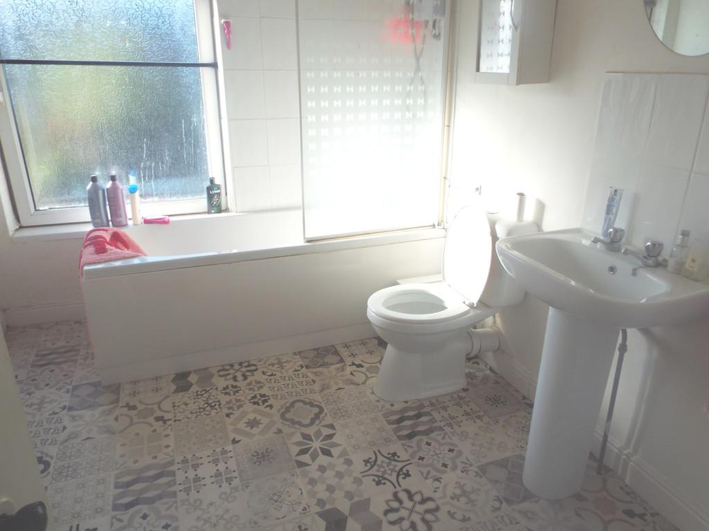 BATHROOM 9' 5" x 7' 2" (2.87m x 2.18m) With panelled bath having separate shower over and screen, pedestal wash hand basin, low level WC, uPVC obscured double glazed window which overlooks the rear, single central heating radiator, fitted cupboard.