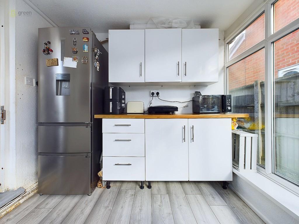 UTILITY 7' 8" x 9' 10" (2.34m x 3m) Laminate flooring, strip light, wood effect worktop, plumbing for washing machine.