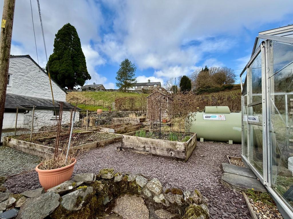 Externally, there is a pretty veranda to the front, framed by well established Wisteria. Opposite the house there is detached lawned garden with well-stocked borders, providing a plethora of colour. At the bottom of the garden there is a gateway with steps going down to the stream. To the side of the property there is a further garden area, with raised vegetable beds, greenhouse and off road parking for at least 2 vehicles. The former village public toilets (now closed) are located here and offers the potential to convert these, subject to the necessary planning permission.