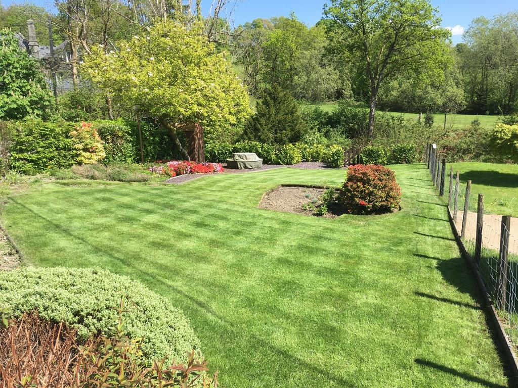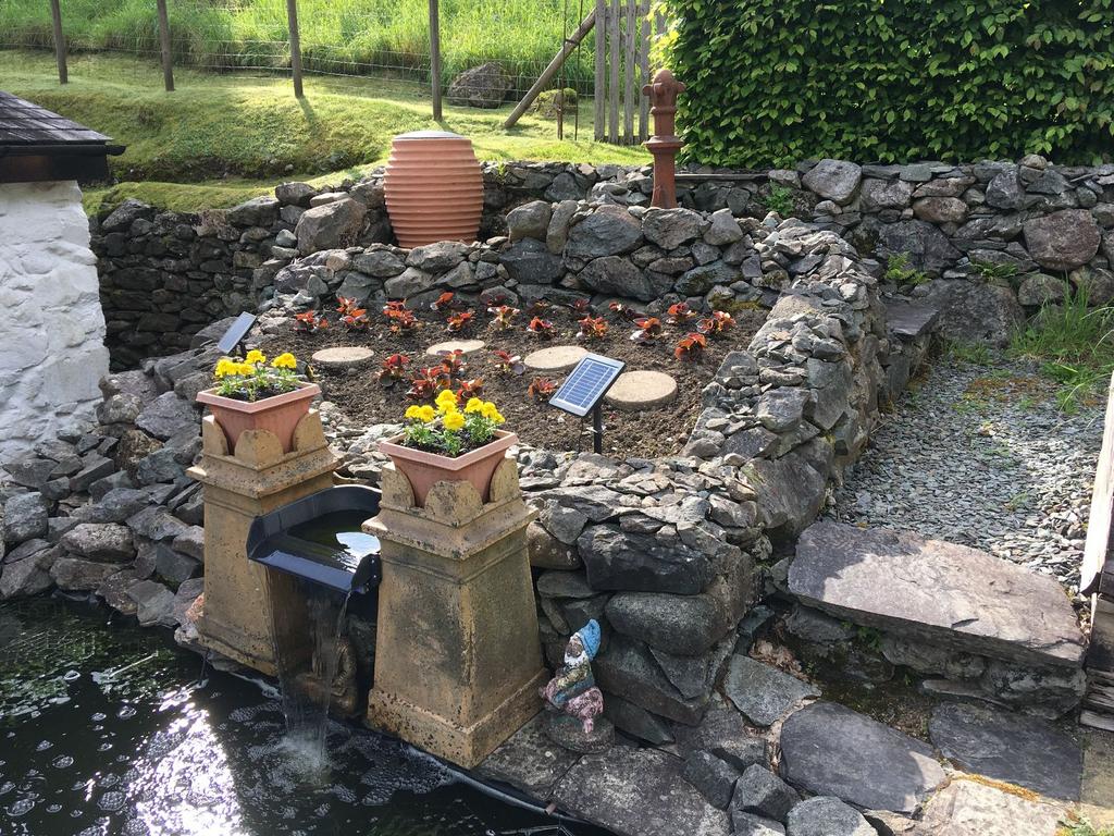 On the opposite side of the lane there is an enclosed, detached lawned garden with stone wall frontage, large lawn area with well stocked borders comprising mature shrubs and trees .A gravelled pathway leads to a gravelled seating area, with gates access down to the stream.
