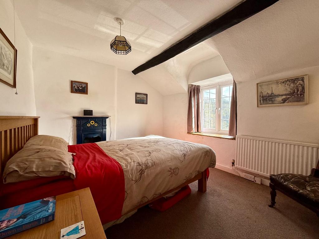 Window to front with open countryside and far distant mountain views, window to side overlooking the side garden, exposed beams, unused fireplace with exposed stone lintel, access to roof, radiator, carpet.