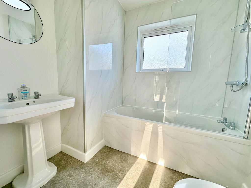 BATHROOM (2.24 m x 1.91 m) :- The bathroom is furnished with a WC, wash hand basin, bath, mains fed shower and extractor fan.