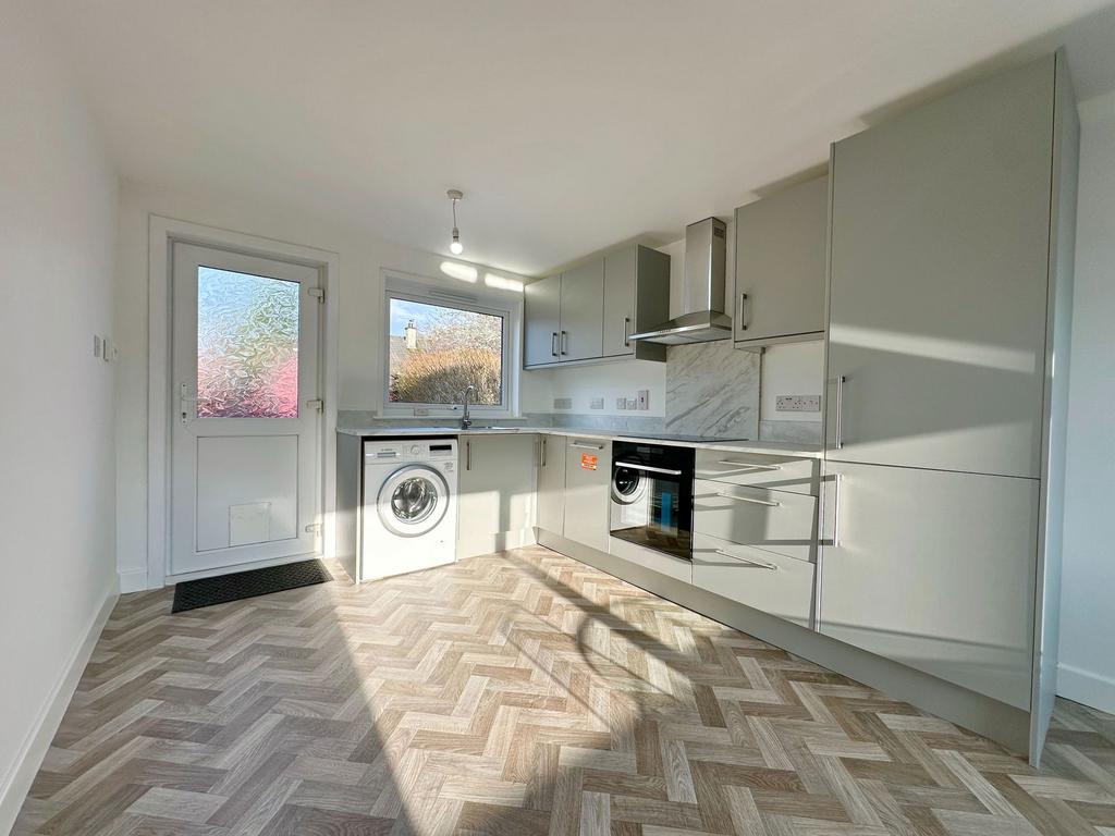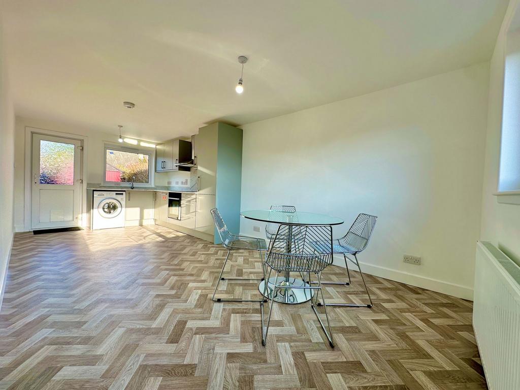 KITCHEN/DINER (6.48 m x 2.97m) :- The brand newly installed kitchen is fitted with a combination of wall mounted and floor based units with stainless steel sink with mixer tap, integrated oven, halogen hob, extractor hood, integrated fridge, freezer and integrated dishwasher. Space is offered for a washing machine and ample room is offered for large dining furniture. This dual spectrum room enjoys a generous degree of natural light courtesy of windows to the front and rear elevation. A glazed door offers access to the rear garden.