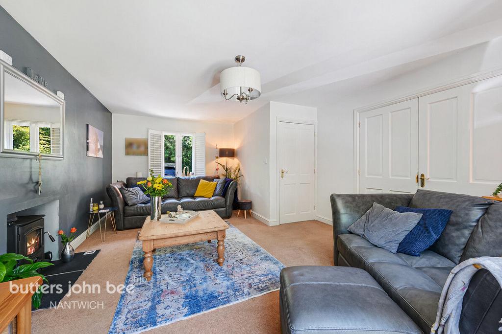 Offering wood burning stove set in recessed fireplace with slate hearth, two double radiators, TV aerial point, double doors to dining room, uPVC double glazed window to front elevation and uPVC double glazed French doors to rear garden with uPVC double glazed windows to either side.