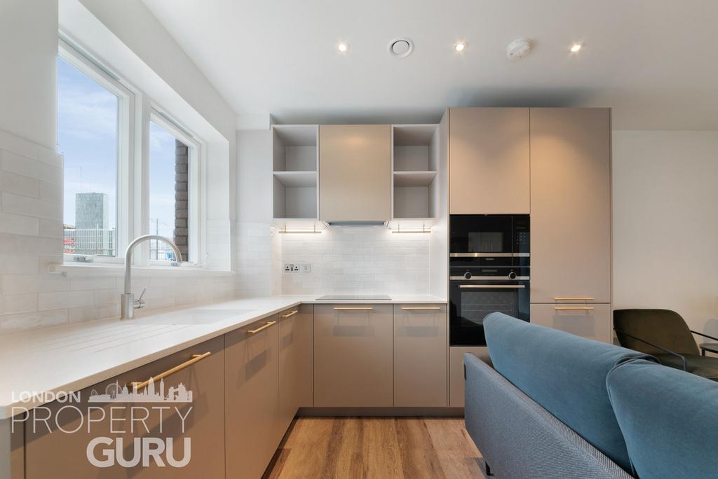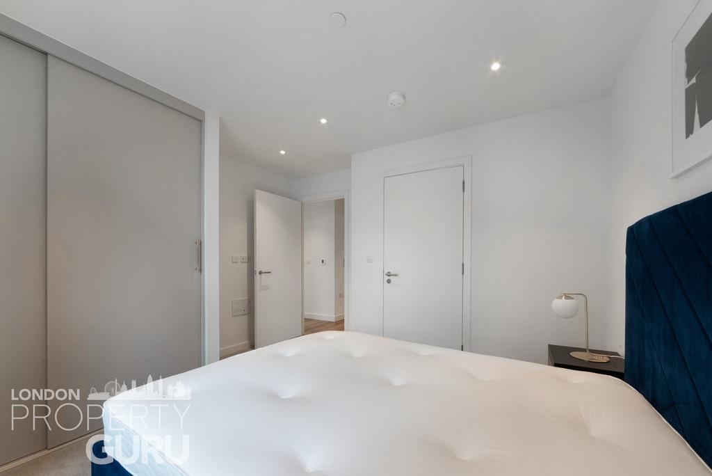 The apartment features a bright, expansive, and elegantly designed open-plan living area, adorned with floor-to-ceiling windows, allowing for an abundance of natural light. The living space seamlessly extends onto a private balcony, providing a tranquil retreat for residents to unwind. The interiors exude sophistication, boasting a bespoke high-specification design throughout. The state-of-the-art kitchen suite is fitted with premium integrated Siemens appliances, while ample storage solutions ensure both style and functionality. The two generously sized double bedrooms feature custom-fitted wardrobes, with the master bedroom benefiting from an opulent en-suite bathroom, finished to an ultra-luxurious standard.