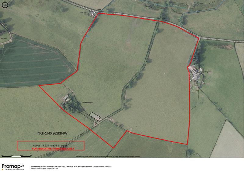 In addition, Low Farthingwell amounts to about 35.91 acres (14.53 hectares) to include the areas occupied by the agricultural building, proposed dwellinghouse, access tracks etc. At present the property is utilised for the grazing of sheep and benefits from a recently constructed agricultural shed (90ft x 40ft).