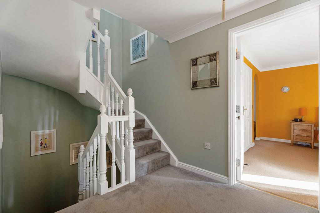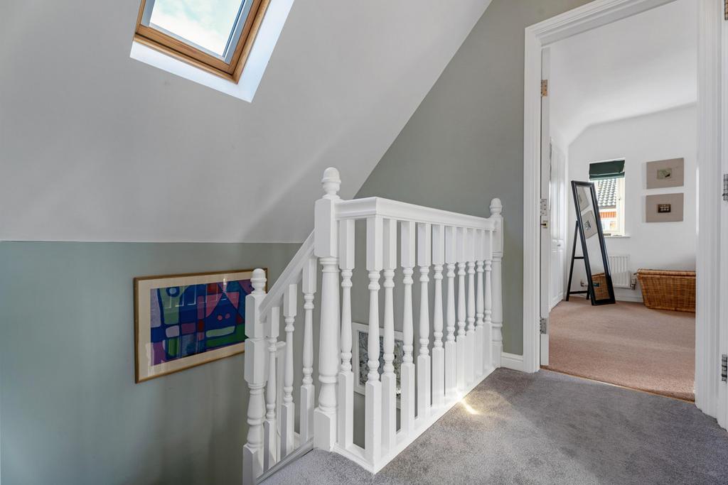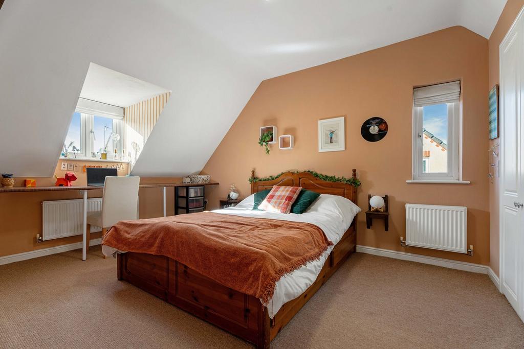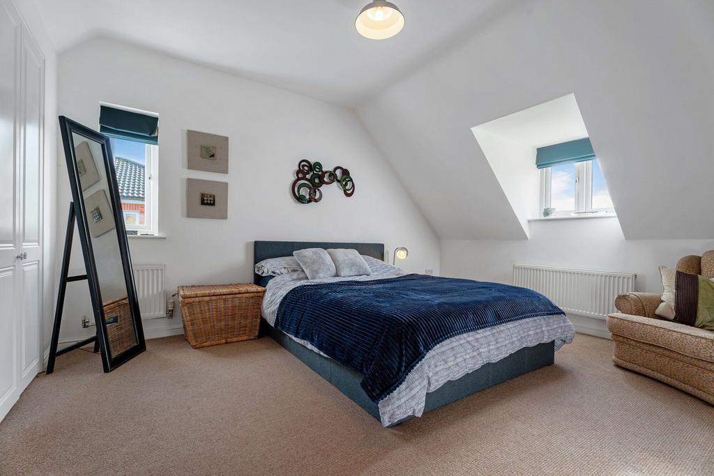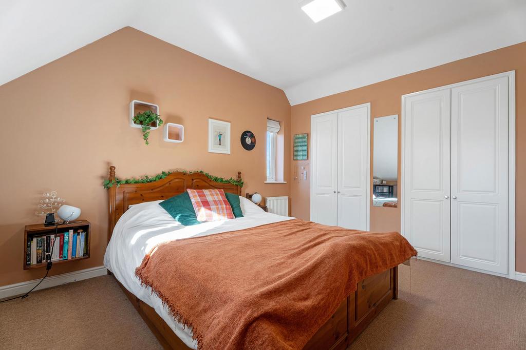The second floor offers two further double bedrooms, each with large wardrobes built into the eaves and an additional bathroom, making it a perfect retreat for teenagers or guest accommodation.