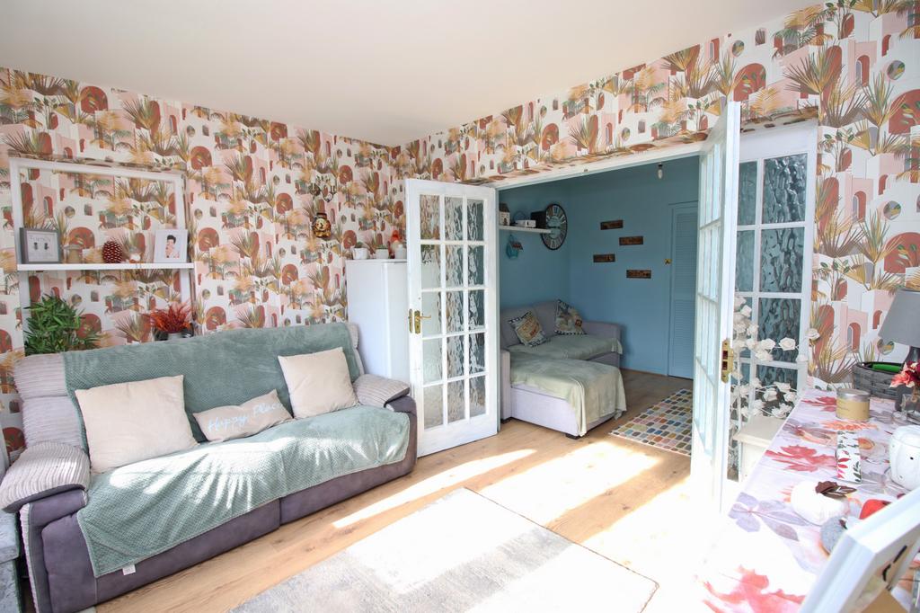 The ground floor of the property offers a spacious living room with large front windows to brighten and warm the room, as well as a feature fireplace for a cosy winters night in; kitchen with a range of wall and base units, side access to the property and dining area. In addition to this, there is a further 2nd living room with storage cupboard space and double doors opening into a dining room, which also has integral access to the garage, rear garden and 2nd bedroom. The ground floor also offers a 3 piece family bathroom with back-to-wall bath, sink wash basin and w/c.