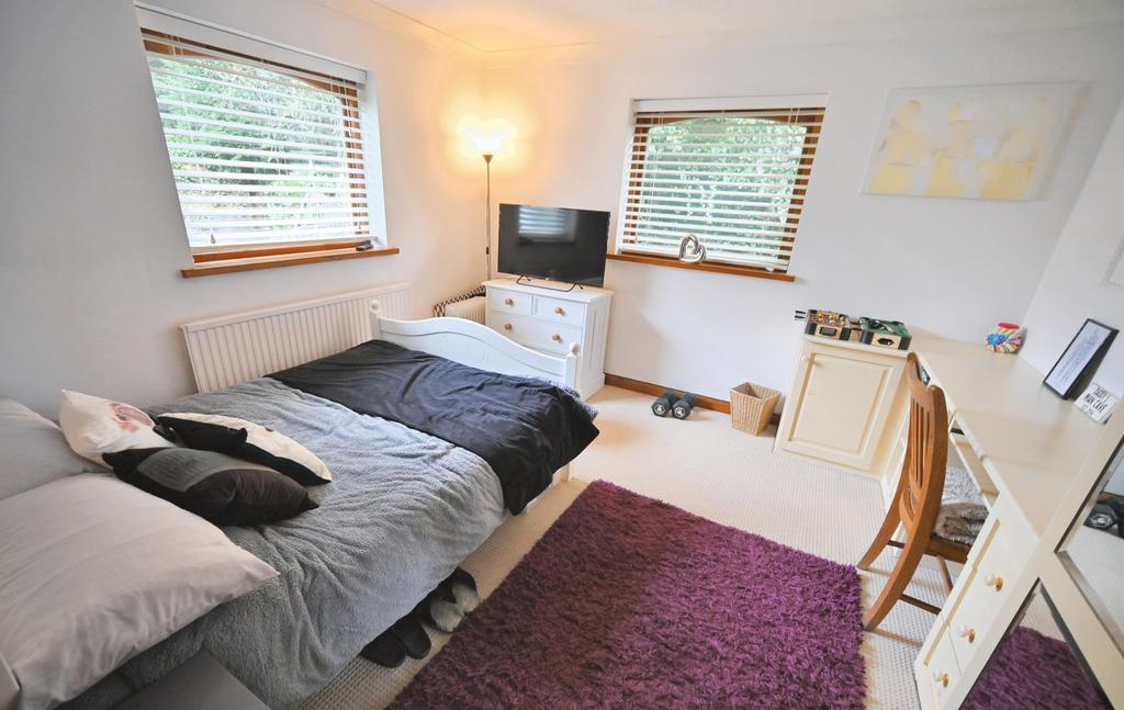 Bedroom Three: 12’8’’ (3.85m) x 8’10’’ (2.70m) Built in furniture including wardrobes, drawers & dressing table, radiator, laminate flooring and hardwood double glazed window to side.