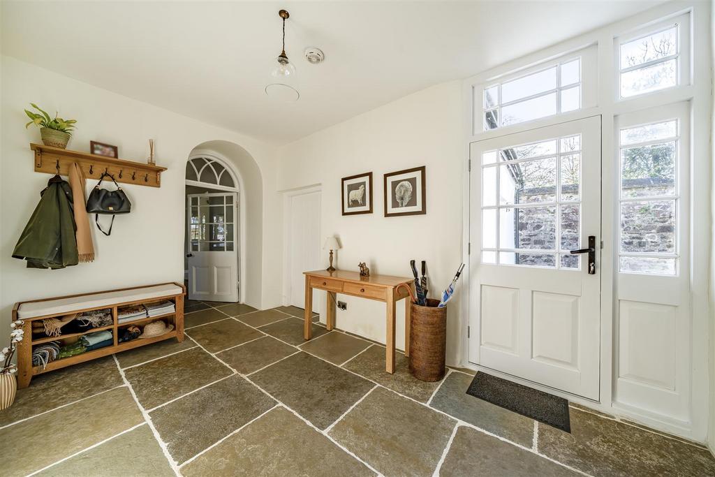 Main House Accommodation - A generous reception hall provides a spacious entrance area giving access to the study on one side, and a walk-in pantry room , with a further doorway leads to the large recently refurbished kitchen/ dining room. This has been refitted with a range of hand made base and wall mounted cupboards, including an island unit. This area then opens into a large sitting area with exposed floor boards, fireplace with wood burner and outlook to the front across the garden and fields. A utility, boot room and shower room lead off the kitchen with separate rear access. Two further reception rooms are accessed from the central staircase hall. Both have attractive exposed floor boards, fireplaces and inset wood burning stoves.