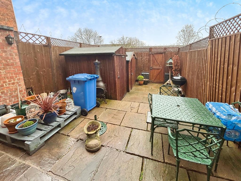 This rear garden is a private and low-maintenance outdoor space, ideal for relaxing or entertaining. The area is fully paved, providing a practical and easy-to-care-for surface. Secure wooden fencing surrounds the garden, offering privacy and a sense of enclosure. There are two storage sheds, adding useful space for garden equipment or outdoor essentials. A gated rear access provides additional convenience. With ample room for outdoor seating and dining, this garden is a functional extension of the home, perfect for enjoying the warmer months.