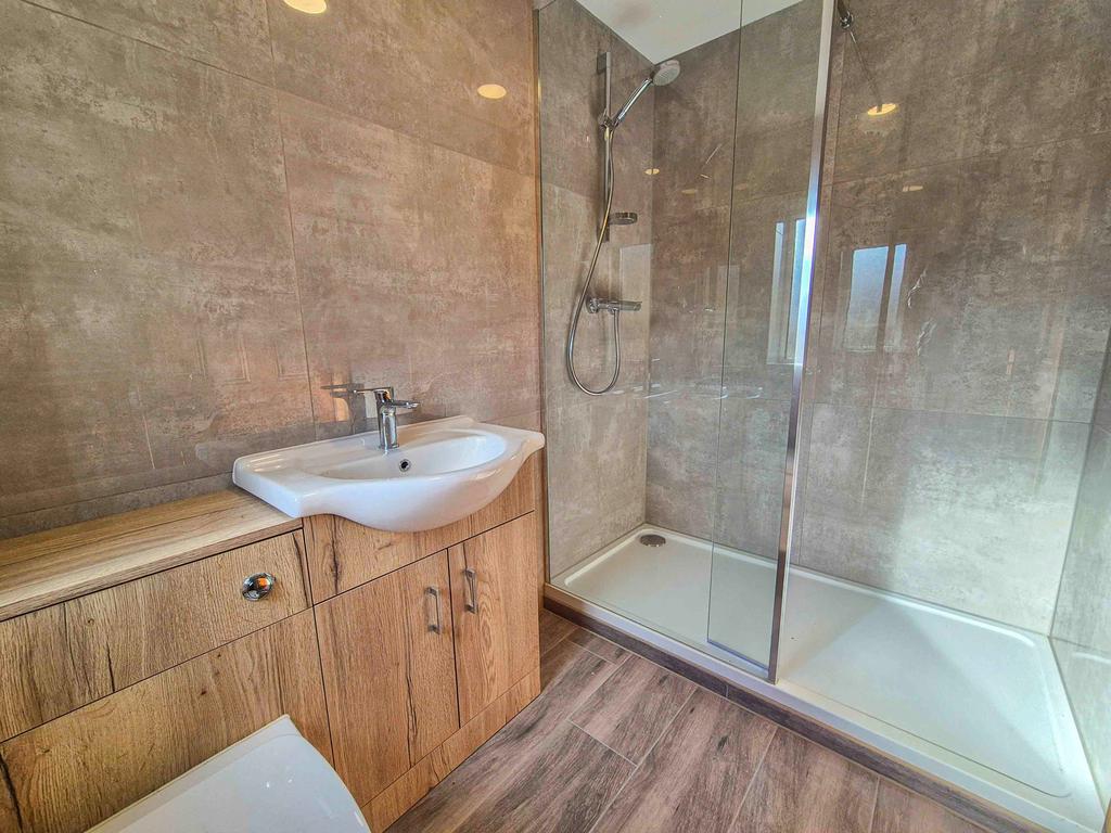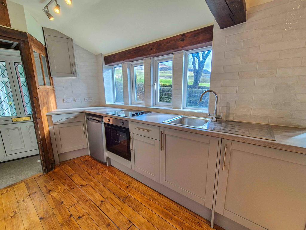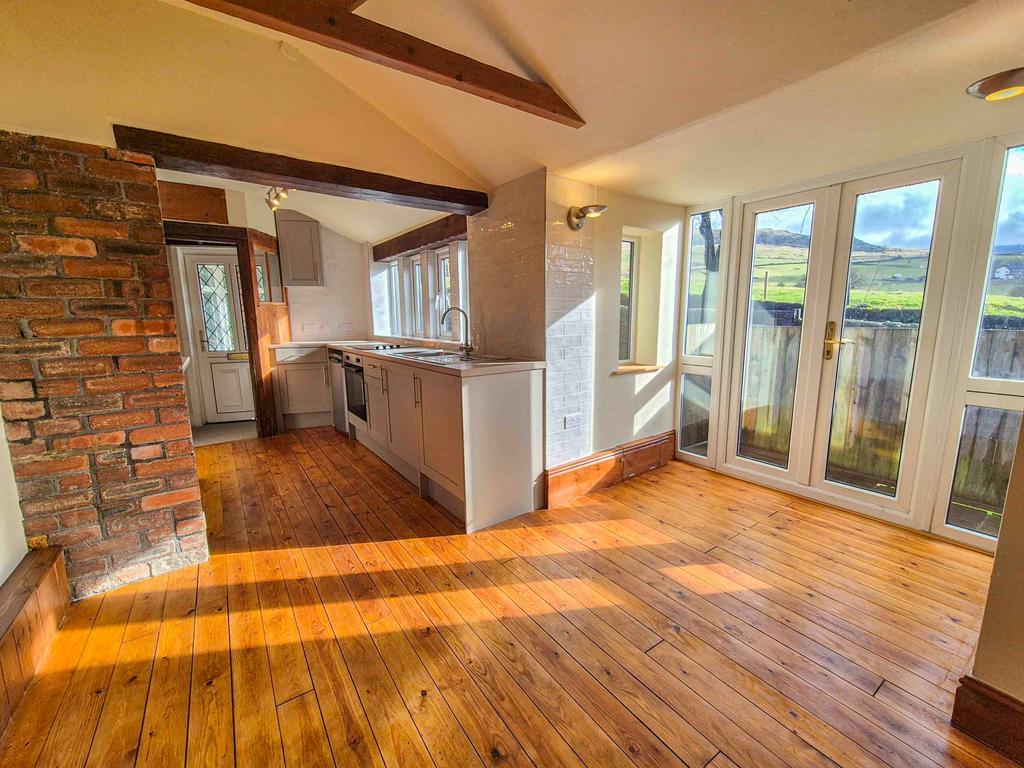The property has a generous front garden, accessible via French doors from the recently fitted modern kitchen/diner enhancing its appeal. Inside the cottage, a welcoming porch leads to the kitchen, a luxurious recently fitted 3-piece shower room with underfloor heating, and a spacious lounge featuring a characterful fireplace and ample further dining space. The first floor hosts a double and a single bedroom both well-proportioned, while a substantial double bedroom resides on the second floor complete with rooflights. A new mains gas combi boiler was installed as part of the renovations.