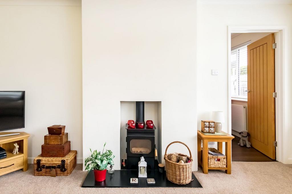Step inside through a welcoming hallway into a cosy yet spacious lounge, bathed in natural light from a large front window and enhanced by the addition of a charming log burner, perfect for creating a warm and inviting atmosphere. The well-appointed kitchen/diner, accessible from the lounge and hallway, features sleek white units, integrated appliances, and ample storage. One end of the kitchen provides space for dining, while the other leads to a utility area with access to the rear garden.