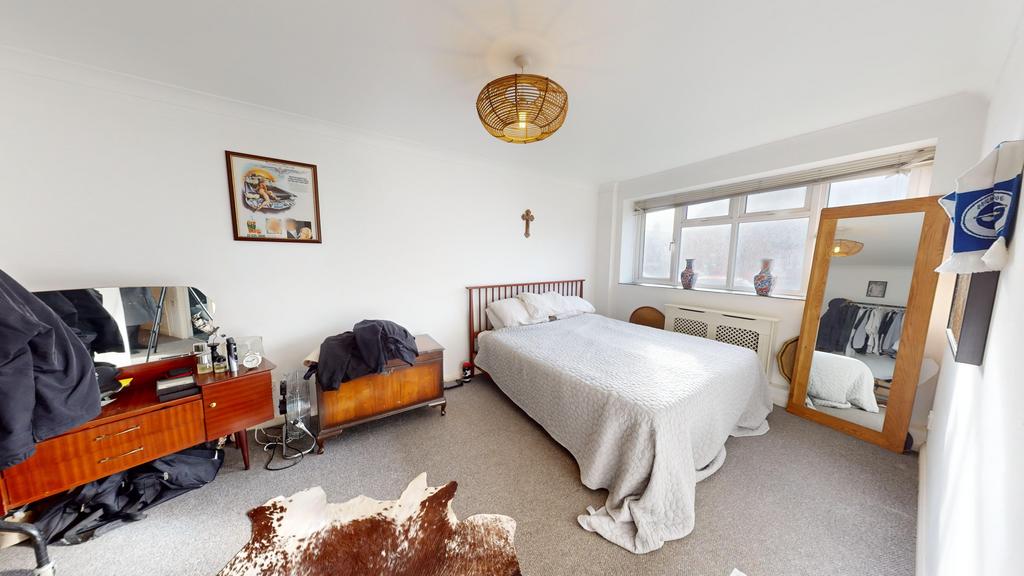 The spacious double bedroom comfortably fits a double bed, wardrobes, drawer units, and even a desk if needed.