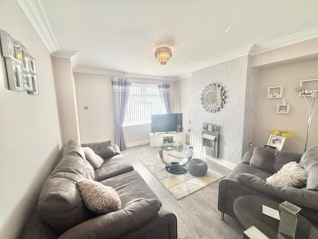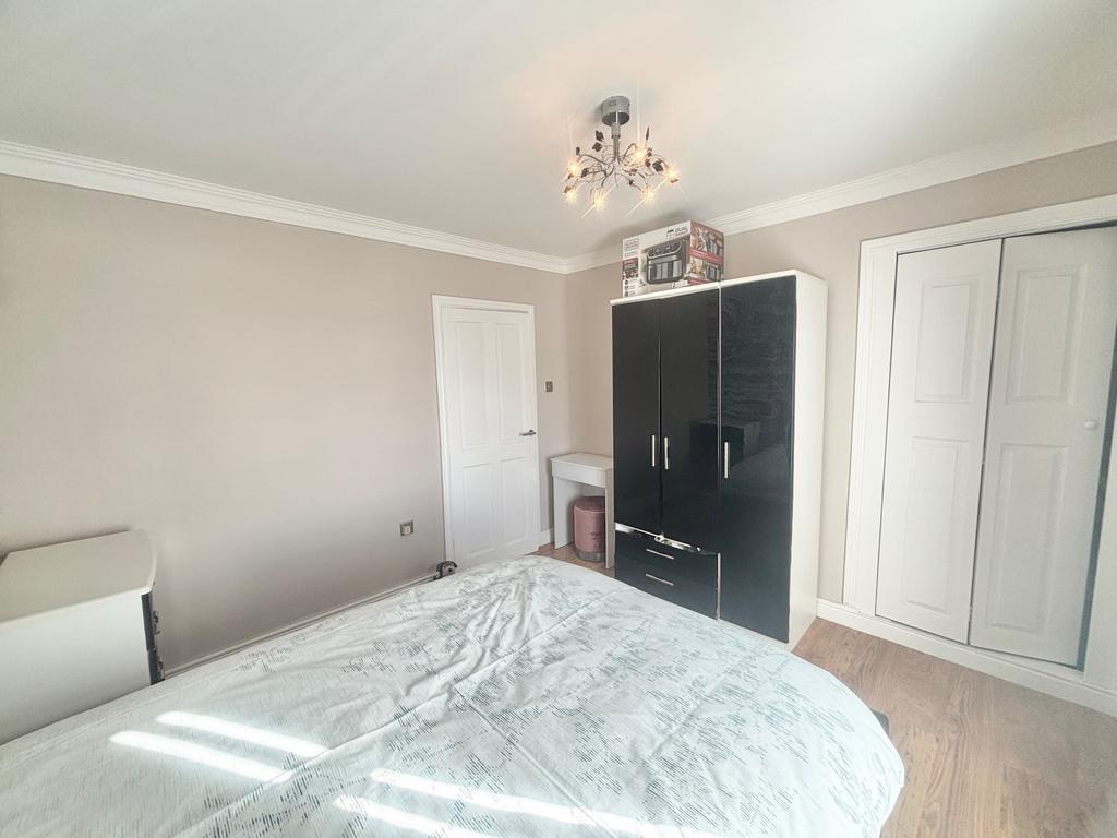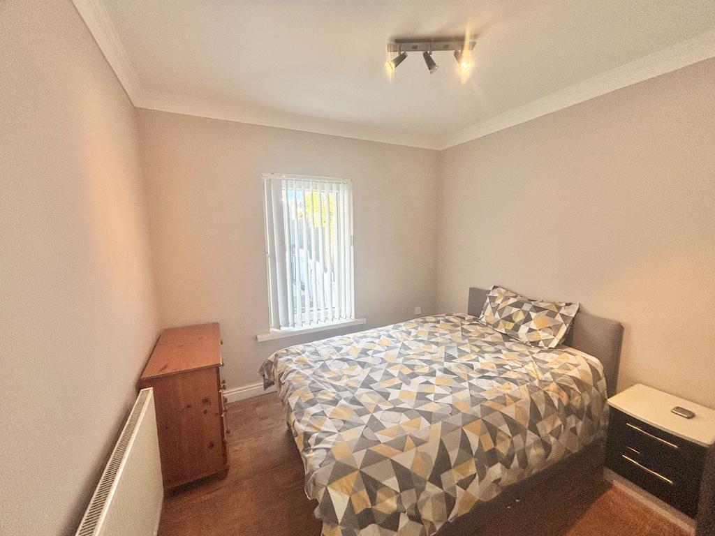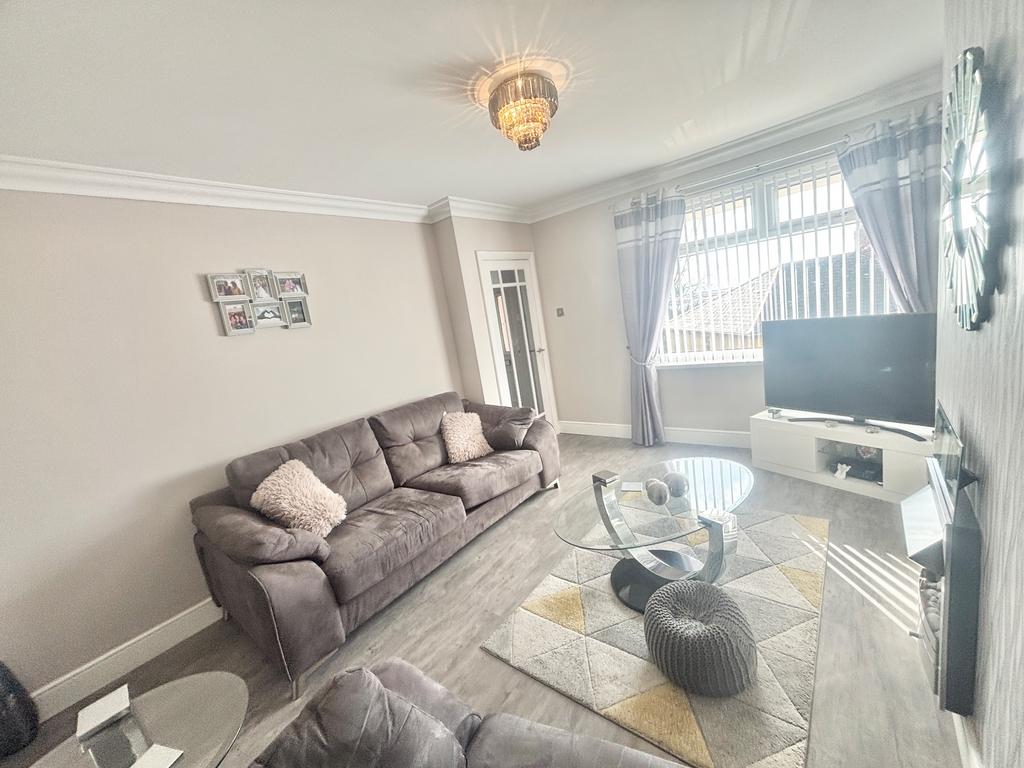 Light grey laminate flooring. Central light fitting. Power points. Designer gas radiator. Electric fire. UPVC double glaze window overlooking front of property.