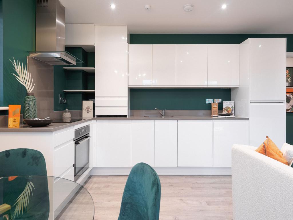 The Cranbourne apartment has a modern open plan kitchen/dining/living room with French doors/Juliet balcony (plot specific), a spacious bedroom, a good-sized bathroom and two handy storage cupboards. Appealing to first-time buyers and young professionals.