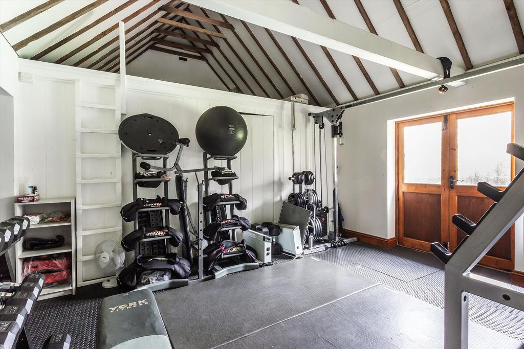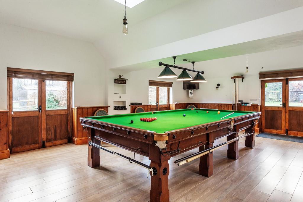 The garage forms part of a substantial leisure outbuilding (in excess of 1650 sq ft) which provides a spacious snooker/games room with double doors to the gardens. A separate games room has a fitted bar area as well as a shower room off and French doors to the gardens. This leads on to a further room (currently used as a gym) and a sauna room with hot tub.