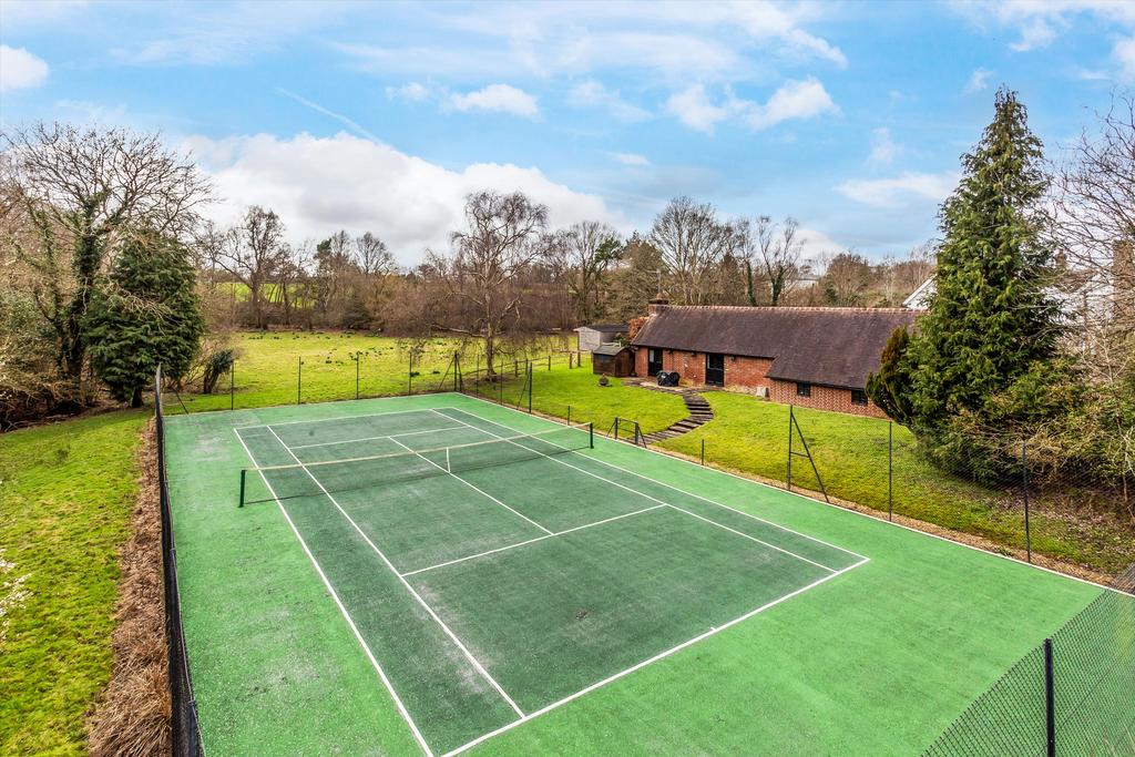 The gardens and grounds surrounding the house are laid to lawn with mature trees and shrubs, a detached workshop and potting shed. To the side of the leisure complex, there is a tennis court, fenced on all sides.