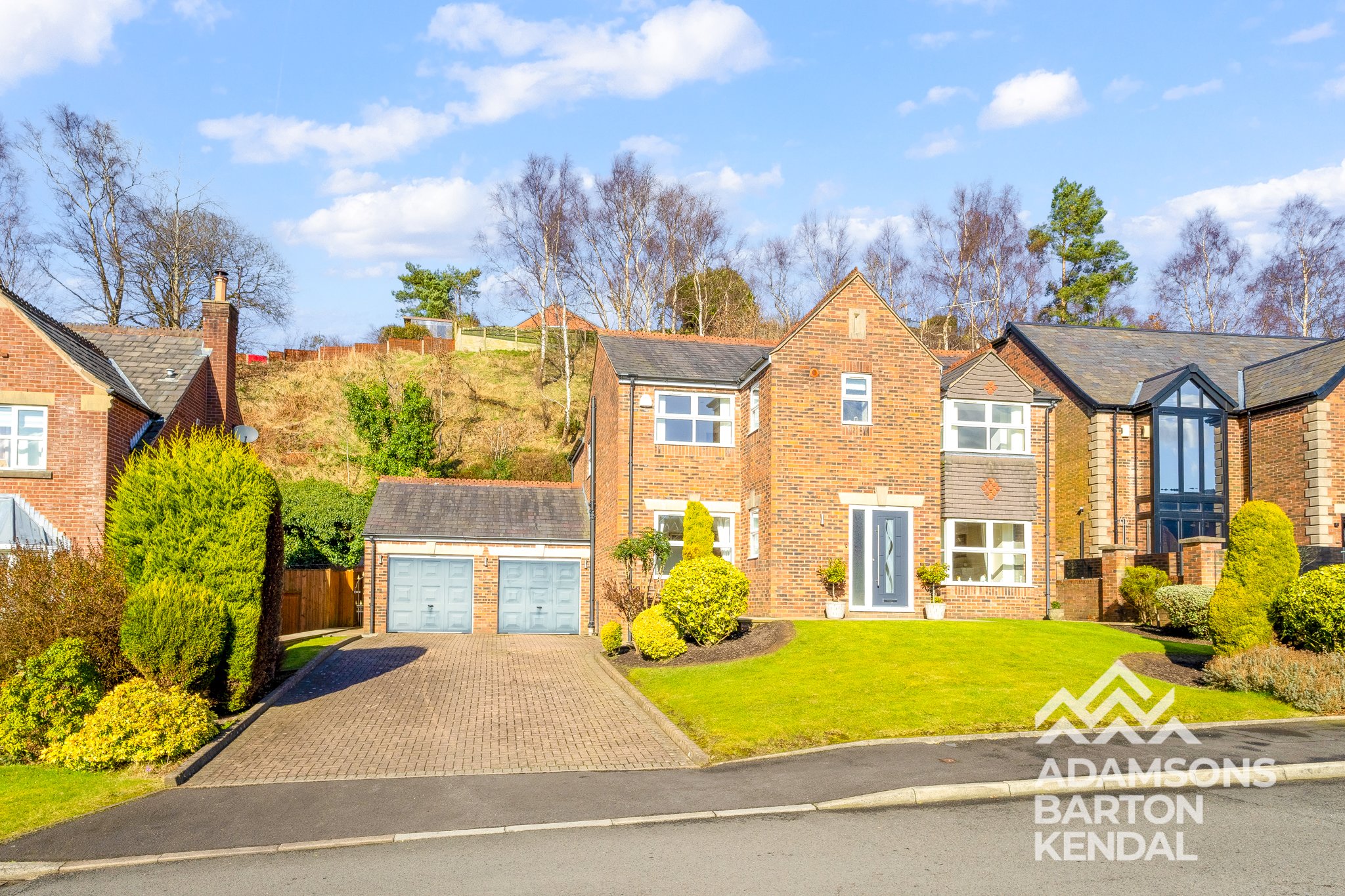 ADAMSONS BARTON KENDAL are privileged to offer for sale this five bedroom executive detached family home in Shaw, which is situated amongst an exclusive development of individually designed homes in a quiet cul-de-sac with stunning countryside views. The property is positioned close to local amenities, schools, shops, and the Metrolink station.