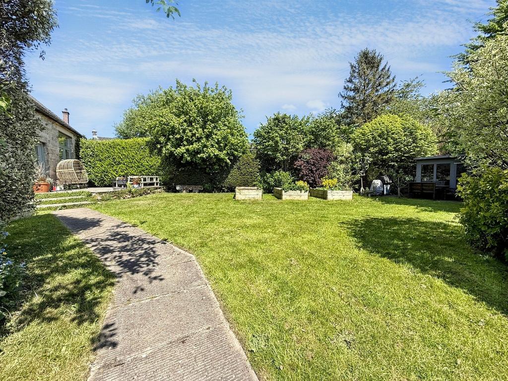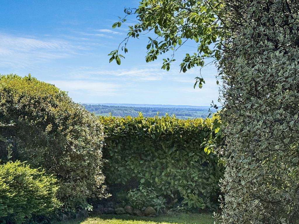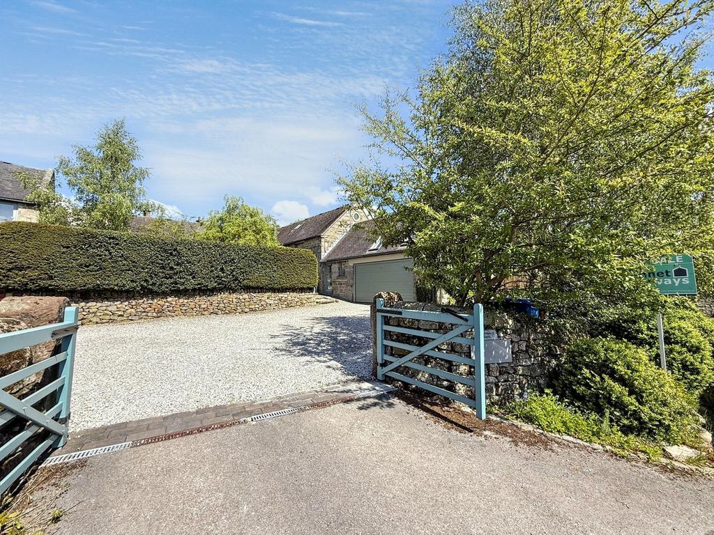 Exterior - Approached via a gated shared entrance, the property leads to a gravel driveway providing parking for several cars. There is a double garage with a new electric door, power and lighting. The low-maintenance front garden wraps around the kitchen, hall, and drawing room, enhancing the property's charm. The enclosed rear garden comprises lawns with planted borders and two paved patio areas, ideal for outdoor dining and enjoying far-reaching countryside views.