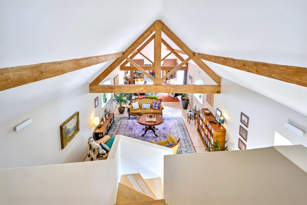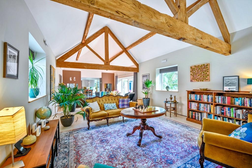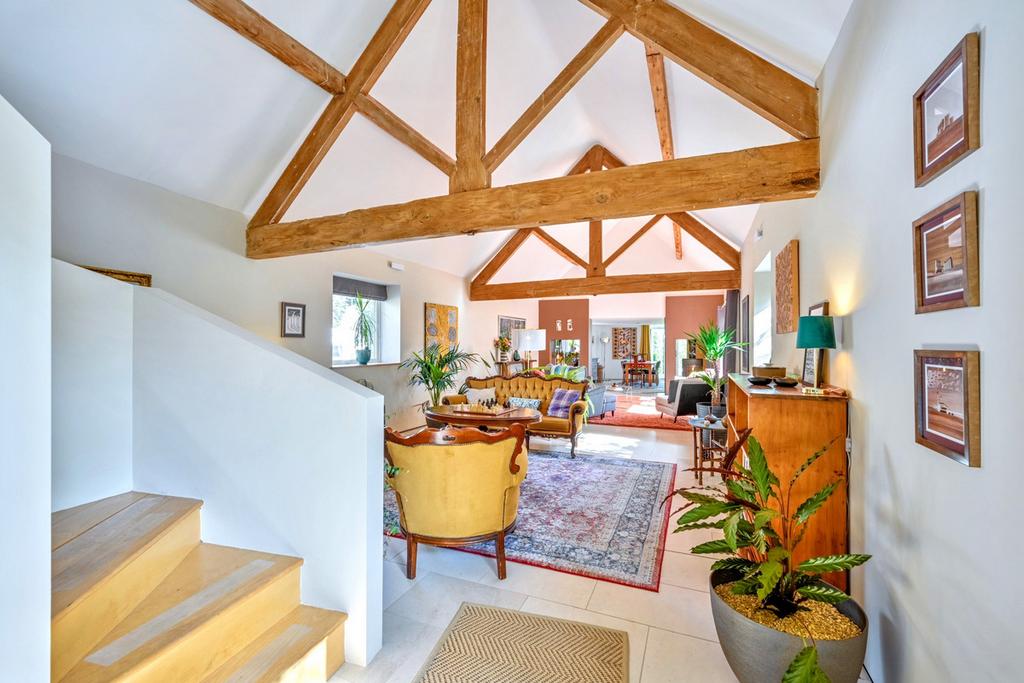- Magnificent open-plan drawing room with vaulted ceiling & exposed purlins
