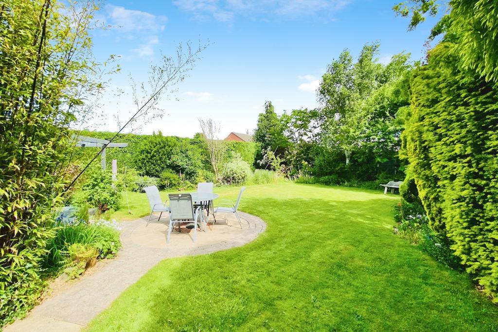Another focal point of the accommodation is the larger than average plot firstly offering a driveway to the front providing off road parking for multiple vehicles and giving access to the integral double garage, with one electric door, one up and over door, light, power and access to a useful storage room behind housing the boiler. Gated access to the side leads around to the mainly laid to lawn garden not overlooked from beyond and featuring a pond with waterfall and decking area, perfect for sitting. There is also an outside tap front and back, feature hot tub, variety of plants, shrubbery and trees, outside electrics and a patio area adjacent perfect for further outdoor sitting.
