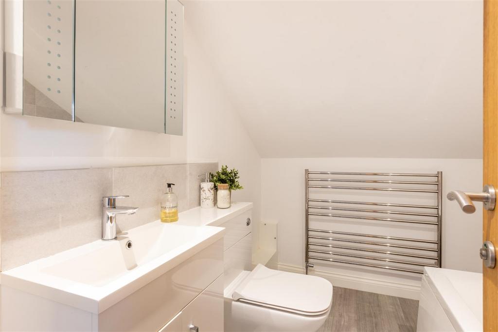Upstairs, two well-proportioned bedrooms offer serene retreats, with views of the surrounding countryside. A modern bathroom, complete with a white suite and shower-over-bath, continues the theme of sleek contemporary living.