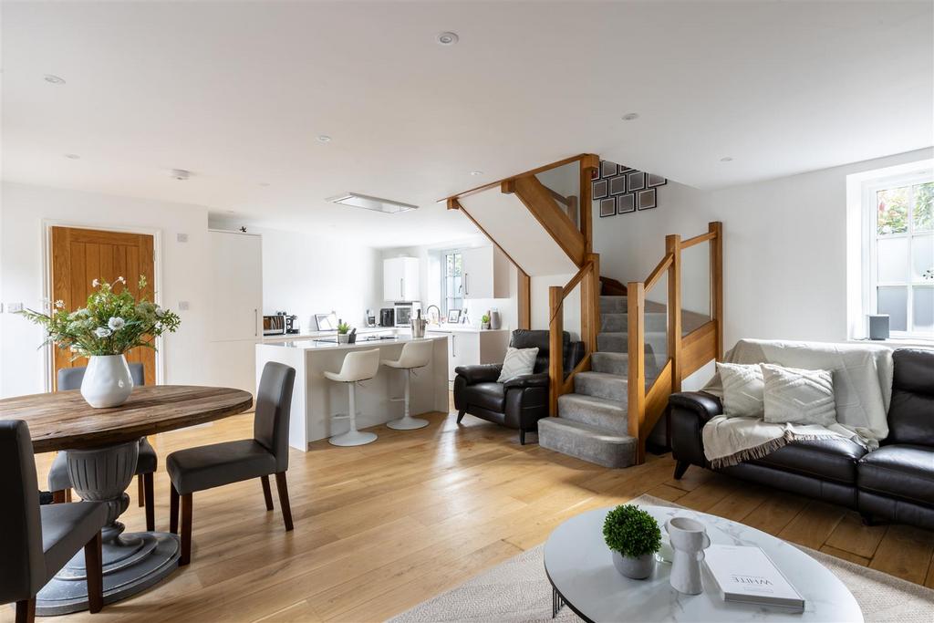 Dating back to the early 19th century, the former stable block was ahead of its time in design, and today, its transformation honours this architectural ingenuity. The property’s curved entrance leads into a stunning open-plan living space, where contemporary design meets historic character.