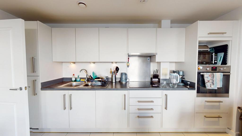 The accommodation features a bright, dual aspect reception room with an open plan, contemporary kitchen, two spacious double bedrooms, a family bathroom, and a stylish en-suite to the master bedroom. Designed for modern living, the apartment showcases high specification finishes throughout and benefits from 24-hour concierge services.