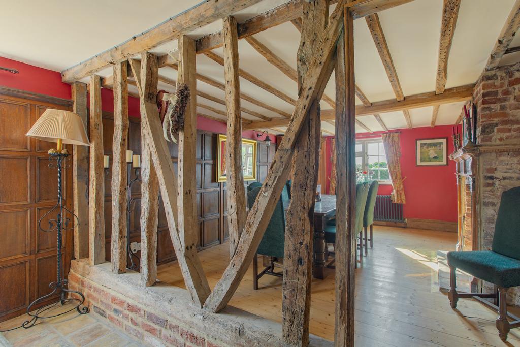 Formal Dining Room – With extensive wood panelling, a characterful corner cabinet, and an open fireplace, ideal for elegant dining and entertaining.