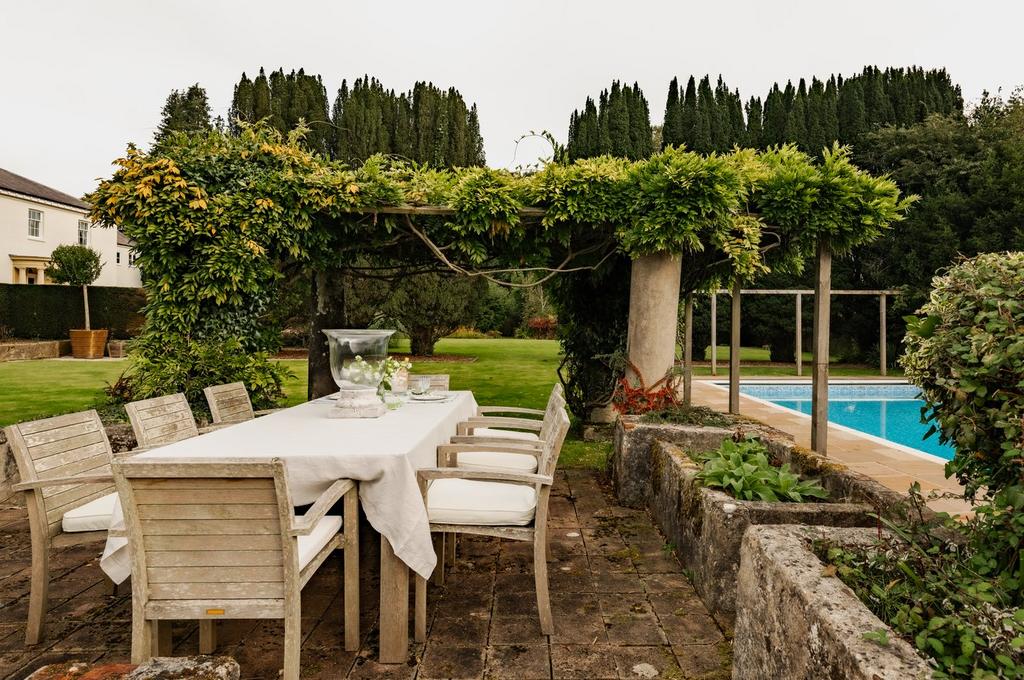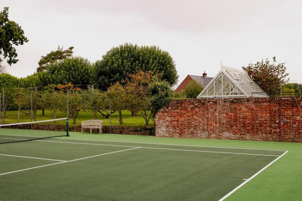 - The grounds and gardens feature a sun terrace, swimming pool, a tennis court and a walled vegetable garden with an orchard