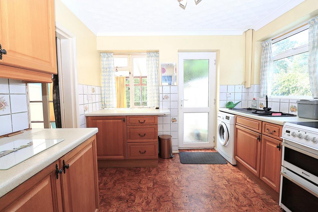 11' 5" x 9' 9" (3.48m x 2.97m) Side aspect double glazed window, rear aspect double glazed door to garden, matching range of eye and base level units incorporating roll edged work surfaces with inset single bowl sink unit with mixer tap. Plumbing and space for washing machine, space for electric cooker, larder cupboard, part tiled walls, textured ceiling.
